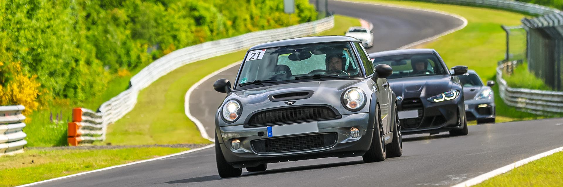 Dafür haben wir ein spezielles Format entwickelt, das Dich in einer homogenen Gruppe, bestehend ausschließlich aus Nordschleifen-Rookies, sicher um die Strecke führt. Dabei gibt es nur ein Tagesziel: durch maximale Streckenkenntnis und Einprägung optimale Sicherheit erlangen.